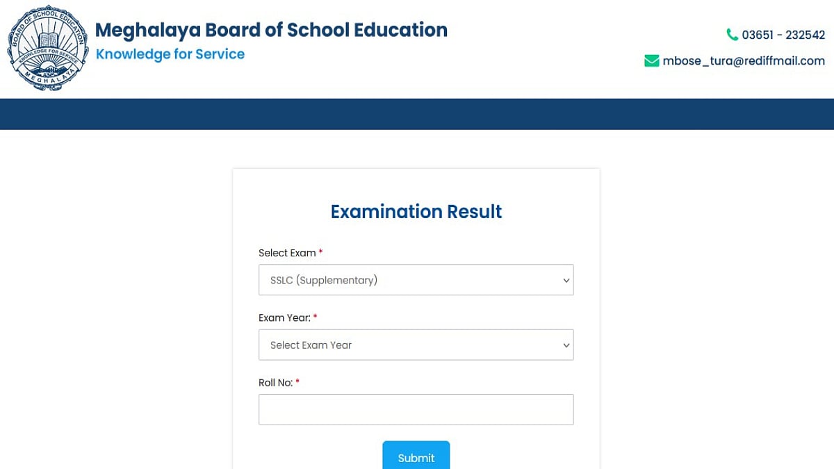 Step 2: Click on the link Meghalaya SSLC supply result 2025 on the homepage