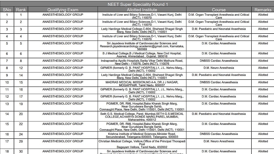 Direct Link To Download NEET SS Counselling 2026 Round 1 Final Result