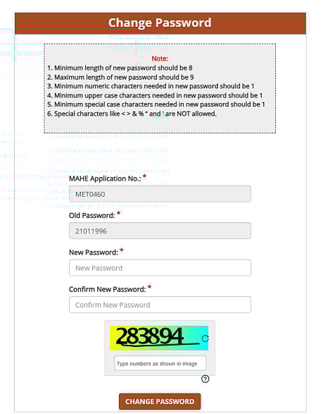 Step 2: Log in using your MAHE application number and OTBS password (DOB in DDMMYYYY format).