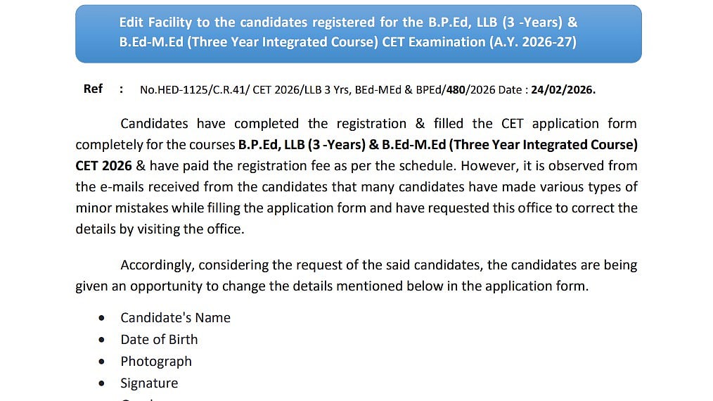 MHT CET 2026: The Maharashtra Common Entrance Test Cell will open the correction window tomorrow, March 8, for the courses B.P.Ed, LLB (3-year), and B.Ed-M.Ed (Three Year Integrated Course) CET 2026. The last date to make changes and pay the registration fee is March 11th, 2026.