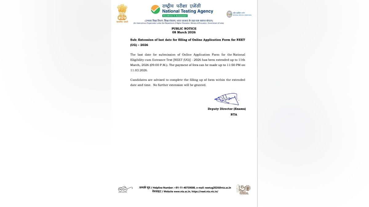 NEET UG Deadline Extended: The deadline for NEET 2026 registration has been extended by the National Testing Agency (NTA). The deadline for NEET UG 2026 registration is currently March 11, 2026. Candidates should apply online at neet.nta.nic.in, the official website. On March 11, candidates must pay the form fees by 11:50 p.m. and submit the NEET application form 2026 by 9:00 p.m. Only the official NTA website has the NTA NEET 2026 application form.