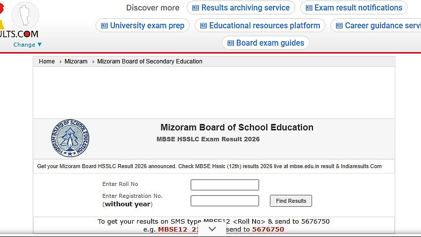 Mizoram Board HSSLC Result 2026: How to check the result via SMS
