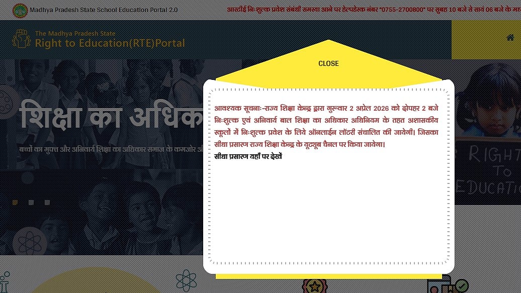 Parents can use the official RTE portal, rteportal.mp.gov.in, to verify the status of the school assigned to their children starting at 2:15 PM. Applicants will receive notifications about their school allotment by SMS on their registered cellphone numbers in addition to the online portal.