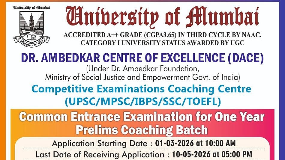 Mumbai: The University of Mumbai has invited applications for its one-year prelims coaching programme under the Dr Ambedkar Centre of Excellence (DACE), offering free preparation support for major competitive exams including UPSC, MPSC, SSC, IBPS and TOEFL.