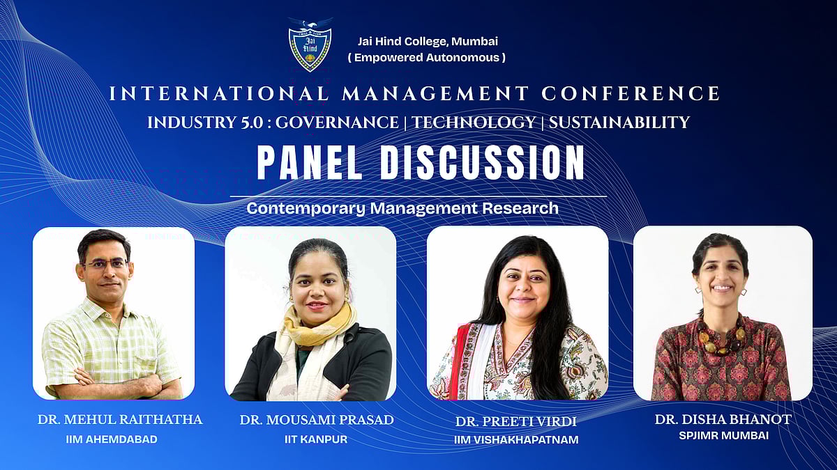 The event is being organized under Dr. Rajesh Thadani, Board President of Jai Hind College , with Prof. (Dr.) Vijay Dabholkar serving as Chairperson and Dr. Rakhi Sharma as Conference Convenor. They are supported by faculty members Mr. Prateek Kumar and Ms. Sravya Peethala, who have collectively worked to create a platform that extends learning beyond traditional classrooms.