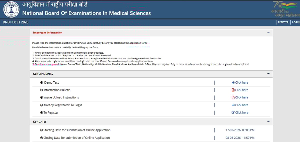DNB PDCET 2026: The National Board of Examinations (NBE) has released the Diplomate of National Board Post Diploma Centralized Entrance Test (DNB PDCET) 2026 admit cards on the official website. Candidates who have registered for the exam can download their hall tickets from the official website, nbe.edu.in. Applications will need to enter their user ID and password as login information. The examination will be held on April 12, 2026.