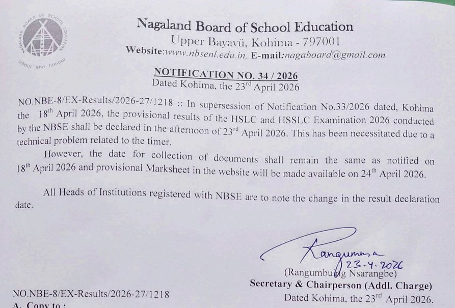 NBSE HSLC, HSSLC 2026: The Nagaland Board of School Education (NBSE), Kohima, has officially confirmed that the HSLC (Class 10) and HSSLC (Class 12) Provisional Marksheet 2026 will be declared tomorrow, i.e., April 24, 2026. Students who appeared for the board examinations will be able to access their results online through the official website.