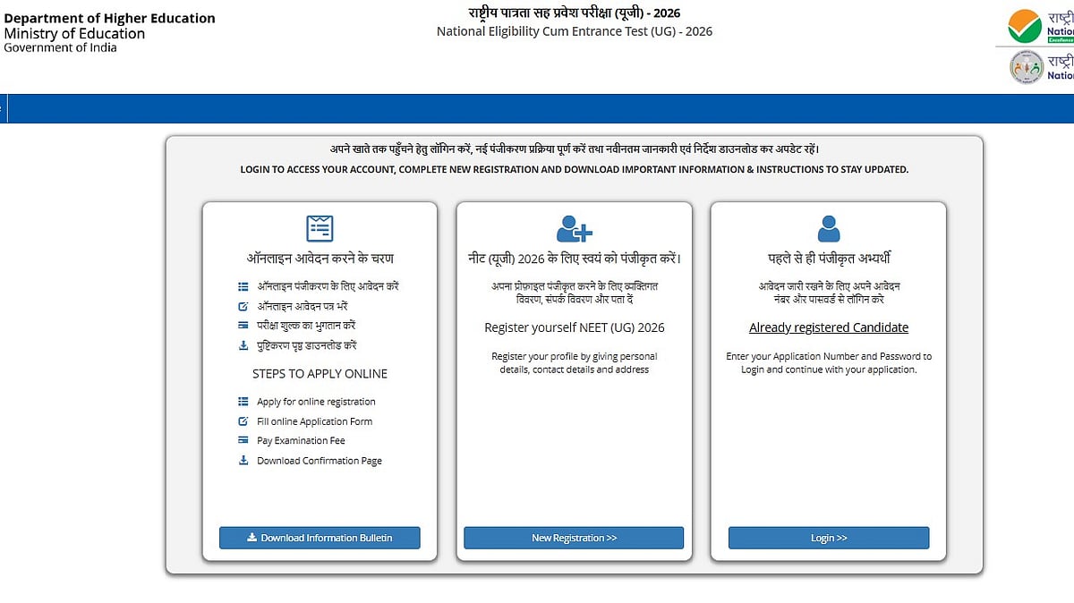 Candidates can follow the steps below to register for the NEET UG 2026 registration: