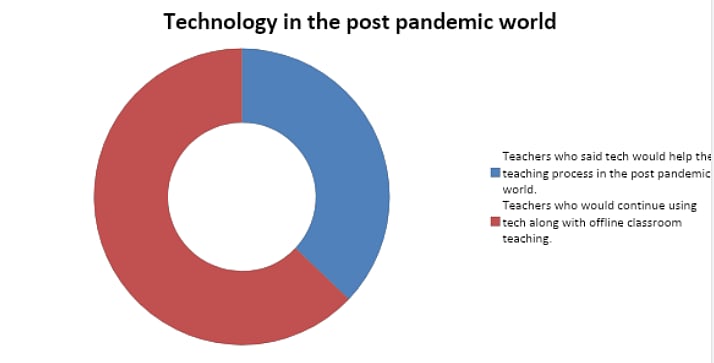 1) Technology would aid teaching in the post-pandemic world: 49% of the respondents said that technology would help the teaching process in the post-pandemic world. The pandemic generated high interest in video conferencing tools with 83% of respondents saying that they would continue using it along with offline classroom teaching. The research also saw an increasing interest in new interactive tools such as quizzing platforms, survey makers, and polling platforms that immersive the classroom experiences during the pandemic.