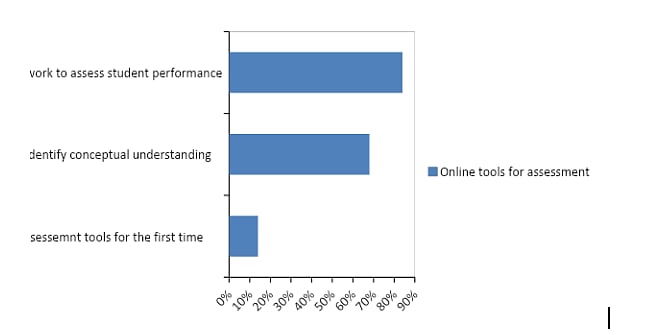 3) Using online tools for assessment: There is a heightened interest in using online assessment tools with 14% of the teachers using such tools for the first time during the pandemic. When asked about the purpose of assessment, 68% of respondents said it helps them identify conceptual understanding, 15% to measure knowledge gaps, 11% encourage student reflection & 6% evaluate pedagogy efficiency. Newer formats of assessment were also seen gaining popularity with 84% of respondents preferring project work to assess student performance.