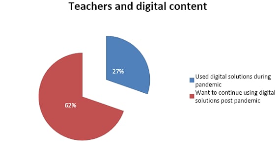 2) The pandemic exposed many teachers to digital content for the first time. While 27% used digital content to teach during the pandemic, 62% said they wanted to continue using digital solutions post-pandemic.