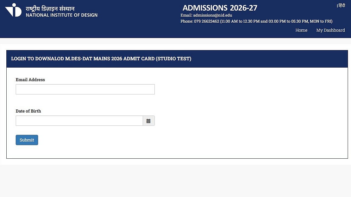 NID 2026 Mains Admit Card: The National Institute of Design has released the NID 2026 Main Admit Card on the official website admissions.nid.edu. Candidates can access their admit card by adding their email address and date of birth.