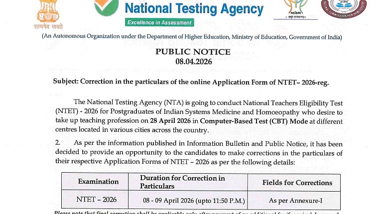 The NTET 2026, conducted for postgraduate candidates in Indian Systems of Medicine and Homoeopathy aspiring to enter the teaching profession, is scheduled to be held on April 28, 2026, in computer-based mode across multiple centres in the country.