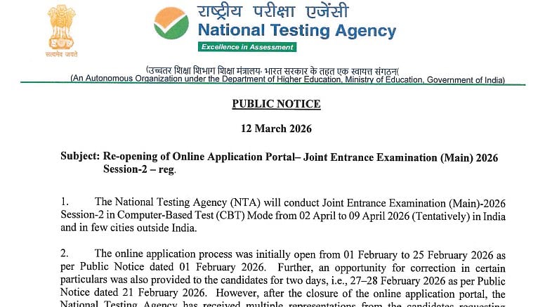 The NTA has earlier opened the extended registration portal due to numerous requests from candidates for an extension or reopening of the online application portal for submitting the JEE (Main) 2026 Session-2 application and paying application fees.