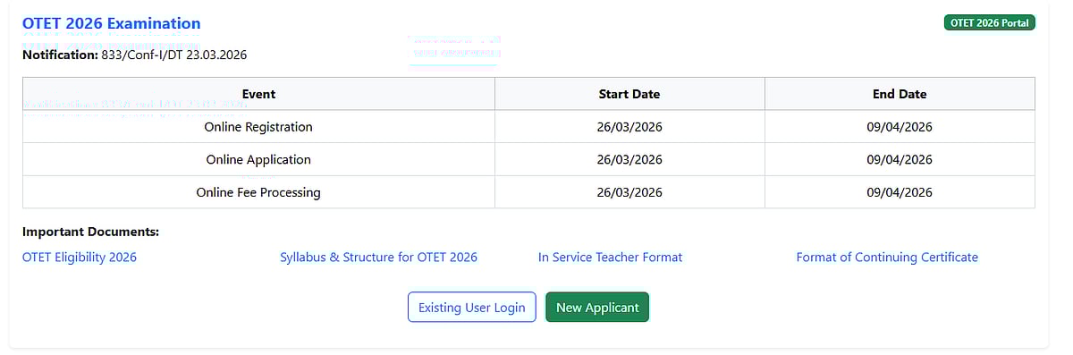 OTET 2026 Registrations: Important Dates