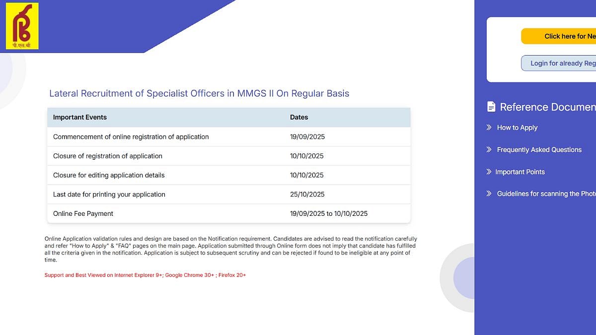 Punjab & Sind Bank Recruitment 2025: The Punjab and Sind Bank will conclude the online application process for the position of Specialist Officer in MMGS II on a regular basis today, October 10. Qualified applicants may apply for the positions on the official website of Punjab & Sind Bank at punjabandsindbank.co.in.