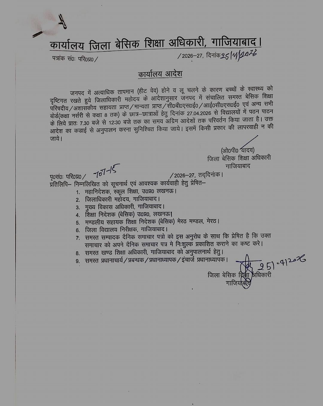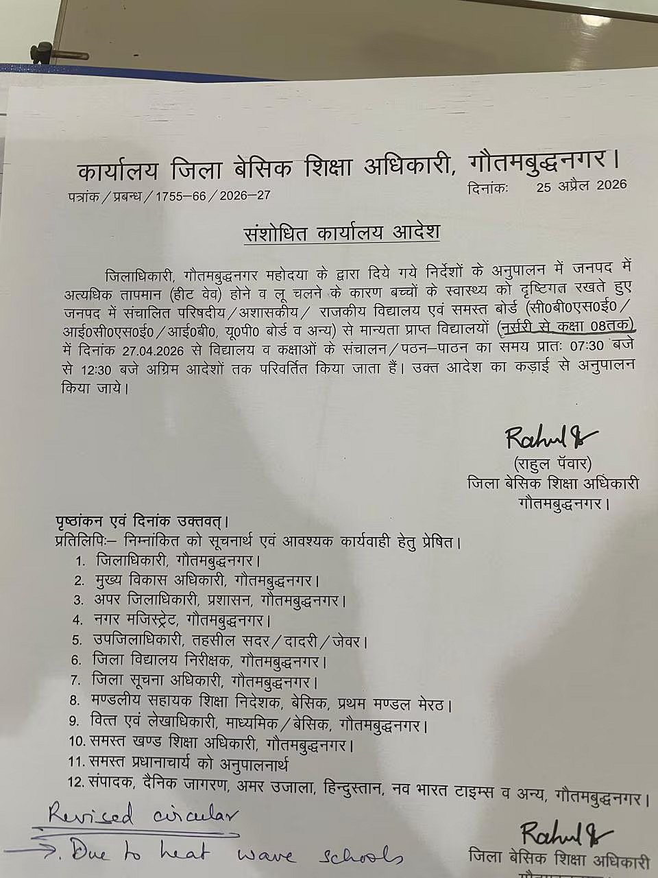 School timings revised to 7:30 am – 12:30 pm in Noida (effective April 27)