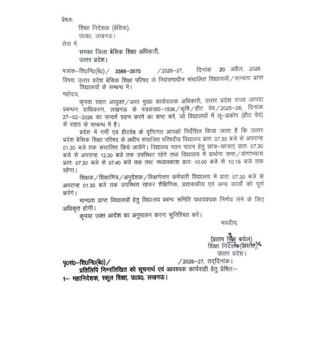 According to the revised directive, all schools must begin classes from 7:30 a.m. to 12:30 p.m., with a new timetable effective April 27, 2026, until further notice. The updated schedule has been implemented to protect young children from the intense afternoon heat. This has increased dramatically in recent days.