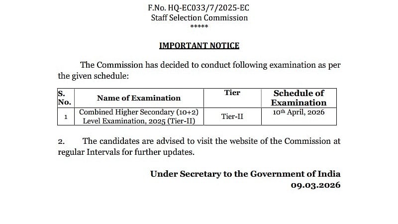 SSC CHSL Tier 2 2026 Exam Date: The SSC CHSL Tier 2 Exam Date 2026 has been announced today, March 9, 2026. Those who passed the Tier 1 exam are required to begin preparing for the Combined Higher Secondary Lebel (CHSL) exam's second level. The date of the Tier 2 exam is April 10, 2026. Candidates can check the official announcement over here or by visiting the official website, ssc.gov.in.