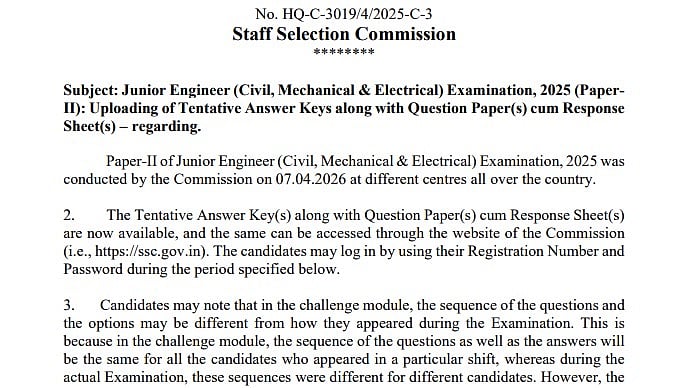 SSC JE Answer Key 2026: Objection Window Closes on April 19