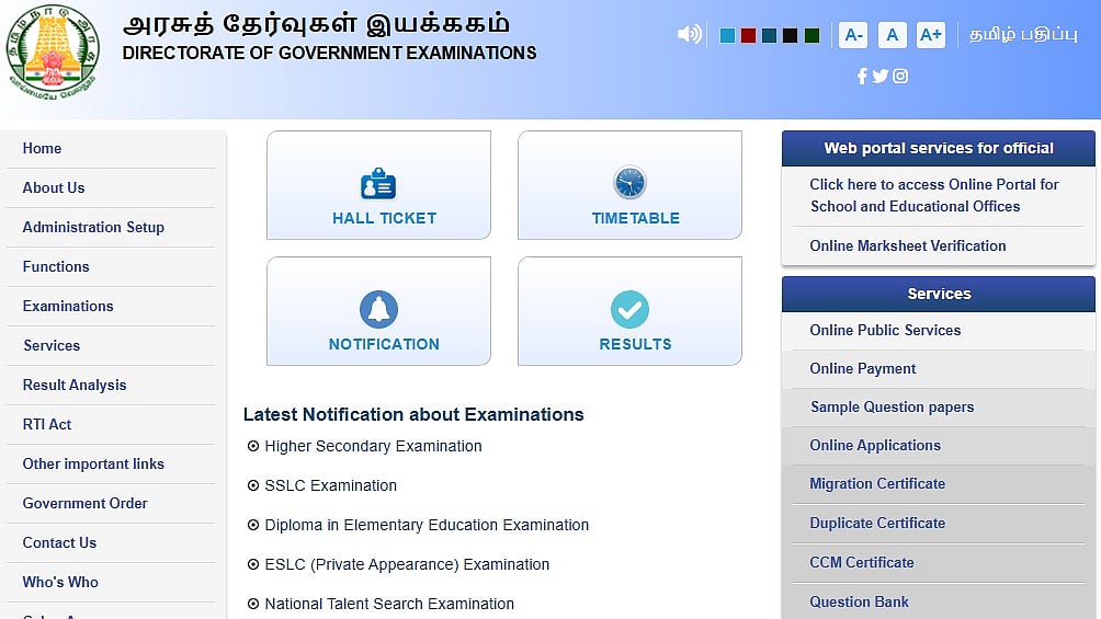 Step 1: Visit the official website of the Directorate of Government Examinations (DGE) in Tamil Nadu, dge.tn.gov.in.