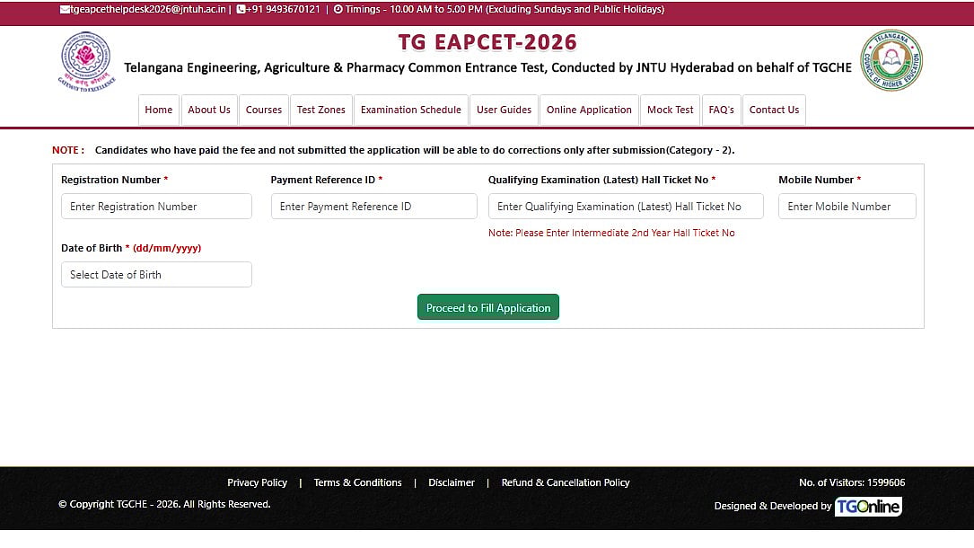 Step 2: Click on the “TG EAPCET 2026 Application Form Correction."