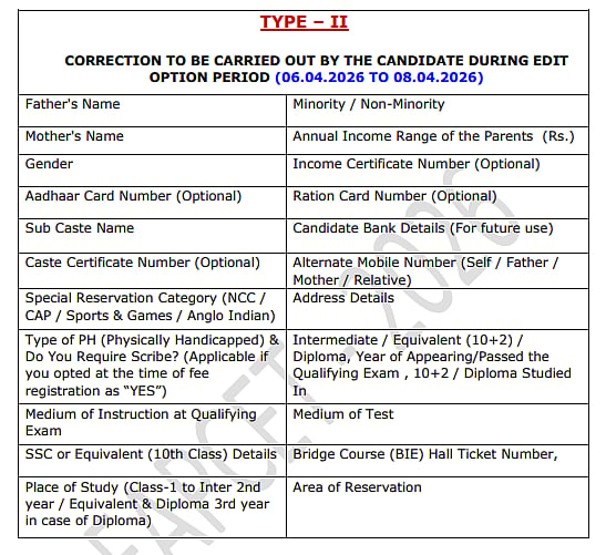 TG EAPCET 2026 Correction Window: Types of Corrections in TG EAPCET 2026