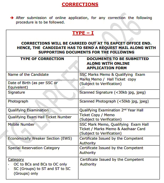 TYPE–I Corrections (By TG EAPCET Office)