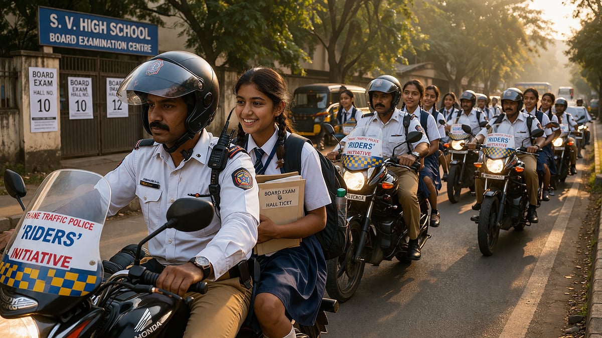 Thane: In a commendable display of public service, the Thane City Traffic Police successfully ensured that 46 students reached their Board examination centers on time, effectively saving their academic year. The initiative, titled "Traffic Riders," was specifically designed to assist Class 10 and 12 students facing transit emergencies.