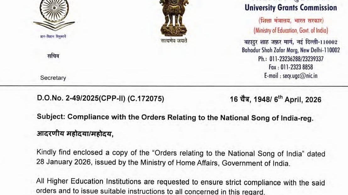 The University Grants Commission (UGC), in an order dated April 6, 2026, released a new notification to all higher education institutes to strictly adhere to governmental directions regarding the National Anthem of India, Vande Mataram.