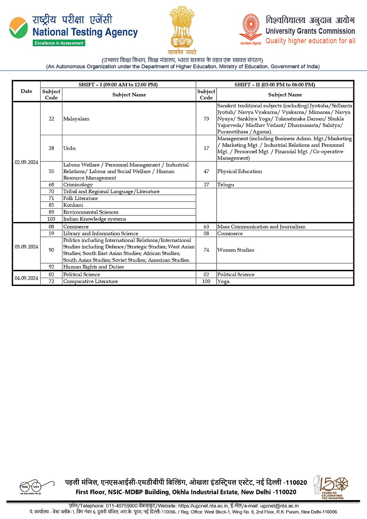 The exam will be conducted in 2 shifts. The first shift will run from 9 a.m. to noon, while the second shift will run from 3 p.m. to 6 p.m. Candidates appearing for the exam can find the detailed schedule released by the NTA below.