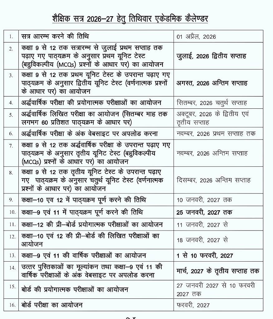 Board practical exams are scheduled from 27 January to 10 February 2027, with the theory exams for Classes 10 and 12 taking place in February. Schools have been instructed to complete evaluation and upload marks on time, with preparations for annual results beginning in March.