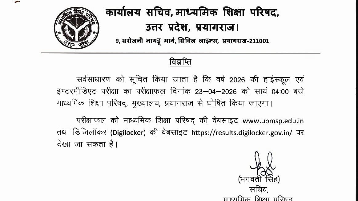 UP Madhyamik Shiksha Parishad Result 2026: The Board of High School and Intermediate Education, Uttar Pradesh, has officially announced the result date for the Class 10 (High School) and Class 12 (Intermediate) examinations 2026. According to a notification issued from its headquarters in Prayagraj, the results will be declared on April 23, 2026, at 4:00 PM.