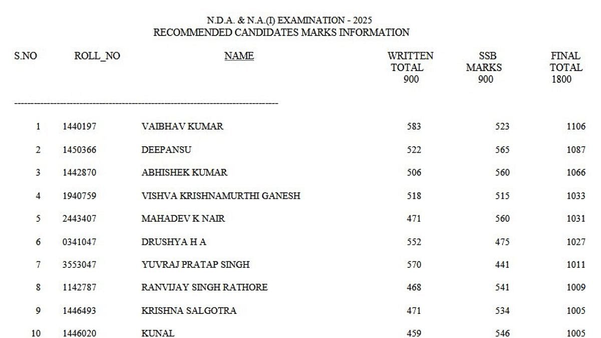 UPSC NDA & NA I Marks 2025: The Union Public Service Commission (UPSC) released the marks of the National Defence Academy and Naval Academy (NDA & NA) Examination (I), 2025. The aspirants who participated in the exam can now view their scores, i.e., written test marks, SSB marks, and final scores, on the official UPSC website at upsc.gov.in.