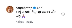 Amid the online backlash, Dwivedi responded in the comments section of a video shared by the actor on social media. Expressing his respect for Yadav, he wrote, "भाई आपके लिए खूब सम्मान और स्नेह (Brother, I have great respect and affection for you)."