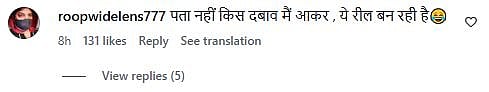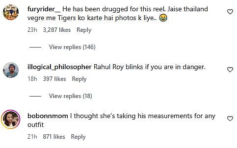 A netizen commented, "पता नहीं किस दबाव मैं आकर , ये रील बन रही है (I don't know under what pressure this reel was being made) (sic)." Another Instagram user wrote, "Rahul Roy blinks if you are in danger (sic)."