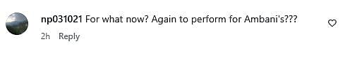 One more netizen commented, "For what now? Again to perform for Ambani's??? (sic)." Check out the comments below...