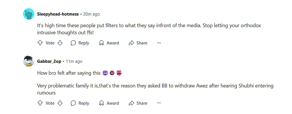 Soon after his interview surfaced on social media, a section of users slammed him for his thoughts. Reacting to a screenshot of his statement on Reddit, a user commented, "Who is going to earn then? Gauahar is the most famous and accomplished person in this family."