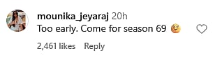 Netizens have hilariously reacted to the picture. A netizen commented, "This is your house sexy. You deserve to be the boss (sic)." Another Instagram user wrote, "Too early. Come for season 69 (sic)."