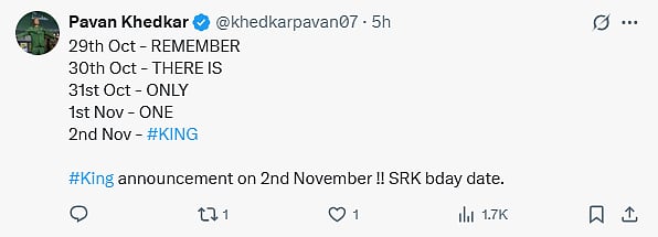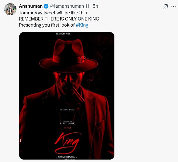 Shah Rukh Khan is all set to celebrate his 60th birthday on Sunday, November 2, 2025. The superstar will be celebrating his birthday in Alibaug with his friends and family. While it SRK's birthday, his fans are going to get a gift from the superstar. Reportedly, the first look of King will be unveiled on Sunday. Director Siddharth Anand have been sharing some cyrptic tweets on X (Twitter) and fans of the actor have decoded it.