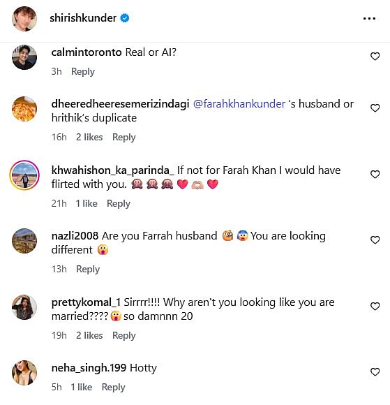 Adding a touch of humour to the conversation, his wife, choreographer-filmmaker Farah Khan, reacted to one of his photos. Commenting on the picture where he was seen inside a flight, she wrote, “Going somewhere??” along with a laughing emoticon. Shirish has not responded to her comment so far.