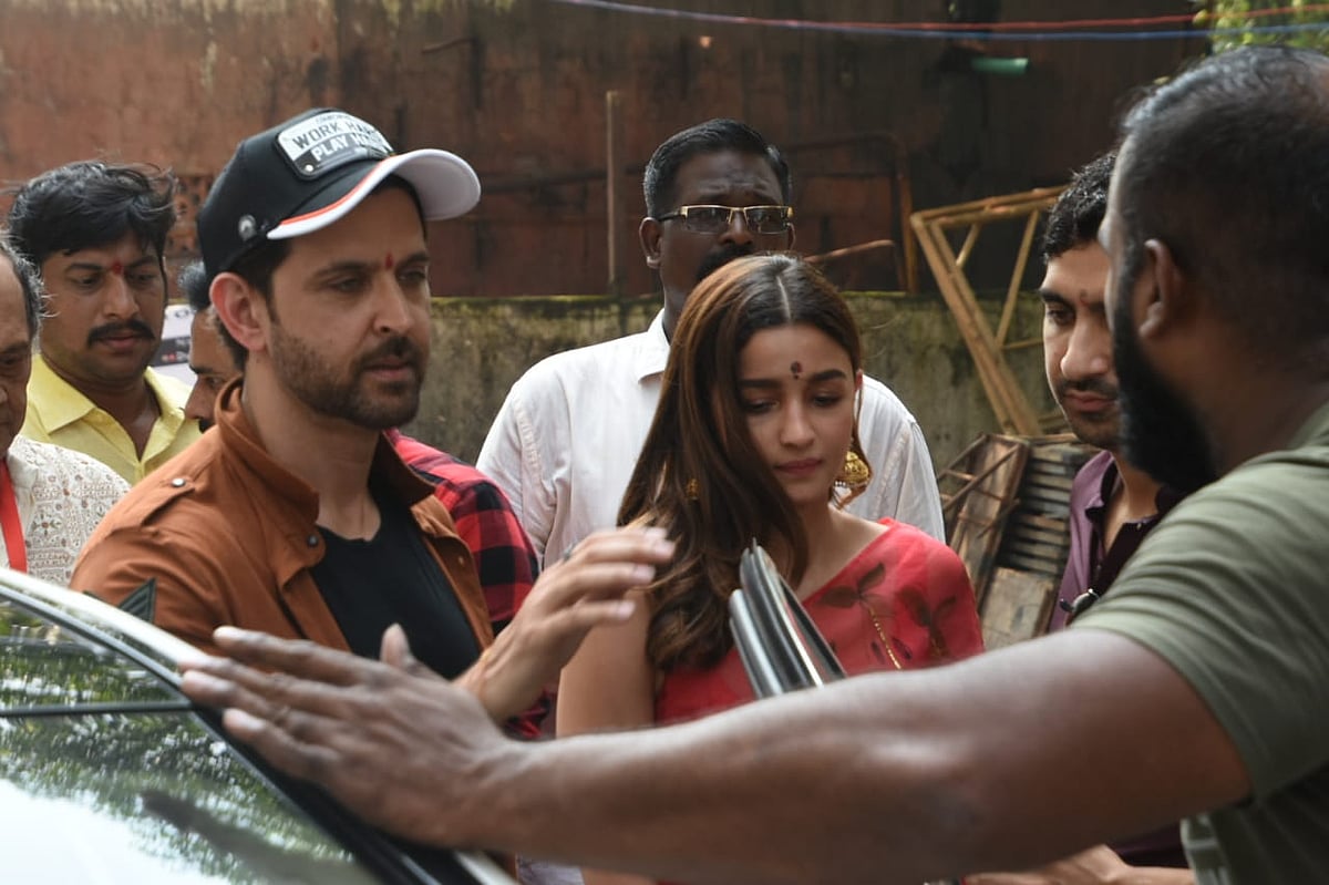 Today Hrithik Roshan, Alia Bhatt and Rakesh Roshan seek blessings of the deity at pandal.