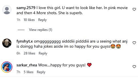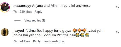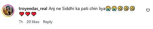 Another Instagram user wrote, "Too happy for u guyzz 😍😍😍.....but yeh bolna hai yeh toh Siddhi ka Pati tha naa (sic)." One more netizen commented, "Omggggggggg sidddiii pidddiii are u seeing what anj is doingg haha jokes aside im so happy for you guyss (sic)."
