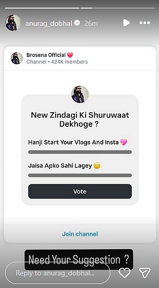 In another Instagram story, Anurag wrote, “New zindagi ki shuruaat dekhoge?” He then shared a poll asking fans whether he should restart vlogging and Instagram, with another option reading, “Jaisa aapko sahi lage.” Through this, Anurag sought suggestions from his followers as he hinted at beginning a new phase in life.