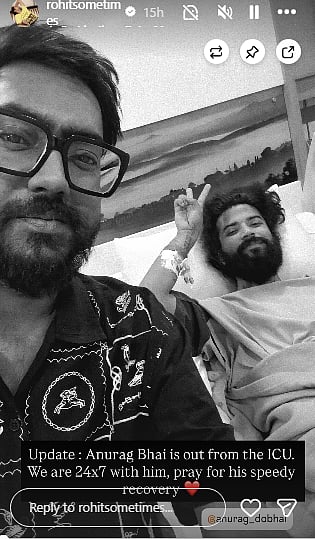 Anurag, who was admitted to the ICU, is now finally out of intensive care. On Thursday, Rohit took to his Instagram Stories to share a selfie with Anurag, who was seen smiling from his hospital bed and flashing a peace sign. Along with the picture, he wrote, "Update: Anurag Bhai is out of the ICU. We are with him 24x7. Pray for his speedy recovery."