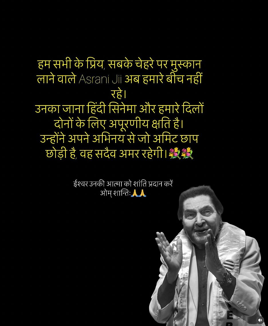 While the caption read, "Our beloved Asrani Ji, who brought smiles to everyone’s faces, is no longer with us. His departure is an irreparable loss for both Hindi cinema and our hearts. The indelible mark he left with his acting will remain immortal. May God grant peace to his soul. Om Shanti."