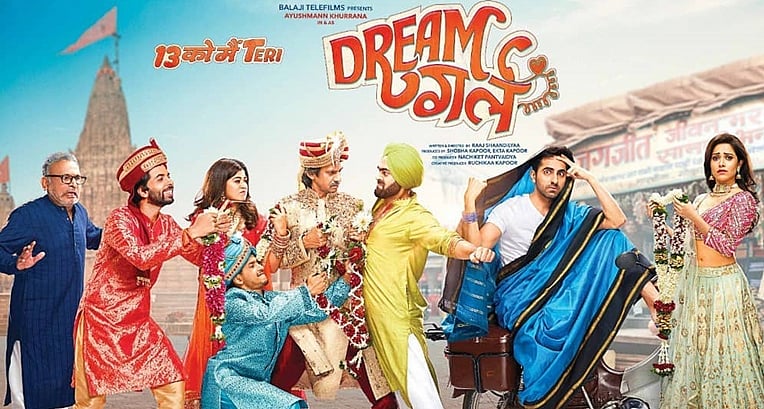 In "Dream Girl", it is the turn of Ayushmann Khurrana, new-age darling of the multiplexes, to invoke girl power and woo the box-office. His act is slightly different from most of what Bollywood heroes have done so far within the theme. Although Ayushmann also gets to play out a sari-clad naari in parts, the crux of his role lies in impersonating a woman's voice.