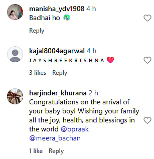 Another Instagram user wrote, "Congratulations sir,,radha rani ki kripa aise hi bni rhe,,radhe radhe (sic)." One more netizen commented, "Congratulations on the arrival of your baby boy! Wishing your family all the joy, health, and blessings in the world @bpraak @meera_bachan (sic)." Check out the comments below...
