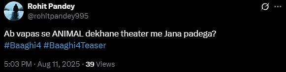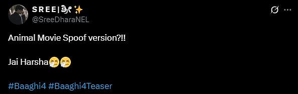 A netizen tweeted, "Animal Movie Spoof version?!! (sic)." Another X user wrote, "It seems brutal, completely different to the previous-ones but at the same time it's like they just copied other A-Rated sort of violent-films, they tried to be so Animal and Marco here, same similar formula but it seems all over the place. Tiger looks good overall (sic)."