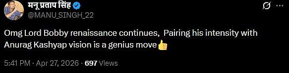 One more netizen tweeted, "Omg Lord Bobby renaissance continues, pairing his intensity with Anurag Kashyap vision is a genius move (sic)." Check out the tweets below...